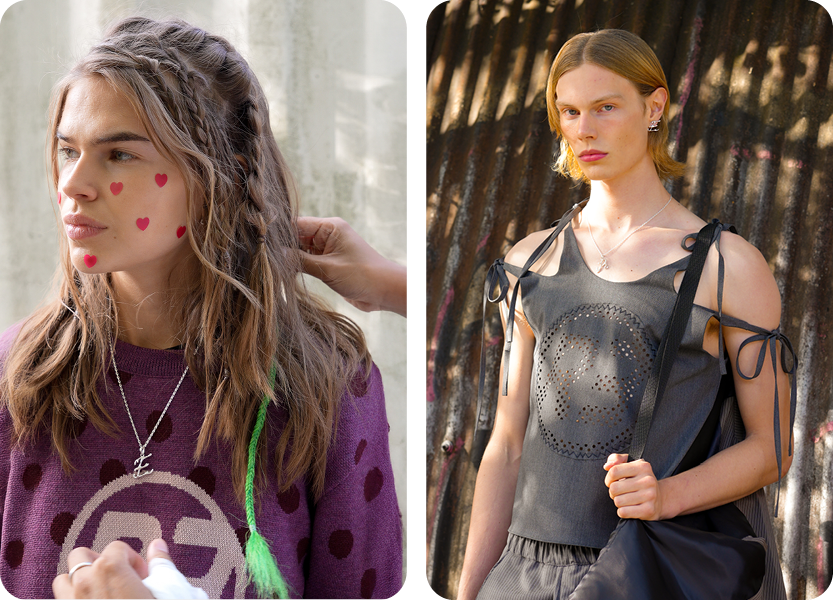 As with Rolf’s collection, custom hair charms were “hand-crafted” from real hair and clipped in “90s DIY style” - which brings a sense of playfulness and nostalgia. A mix of grit and sentiment, structure and freedom. Every look tells a story of renewal.