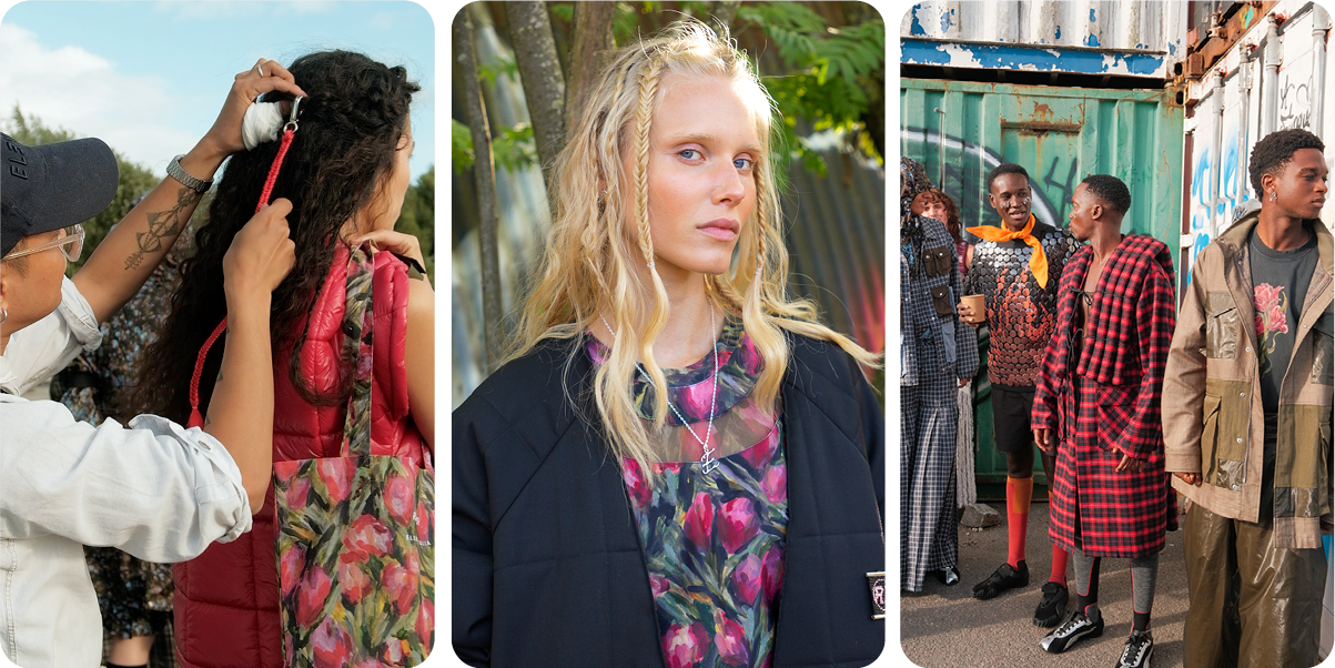 “For Rolf Ekroth SS26 ENCORE Collection, we wanted the hair to feel raw, expressive, and a little nostalgic. Think undone braids & plaits, bold dip-dyed hair pieces, and playful hair charms -each look is about reinvention, just like the collection.”